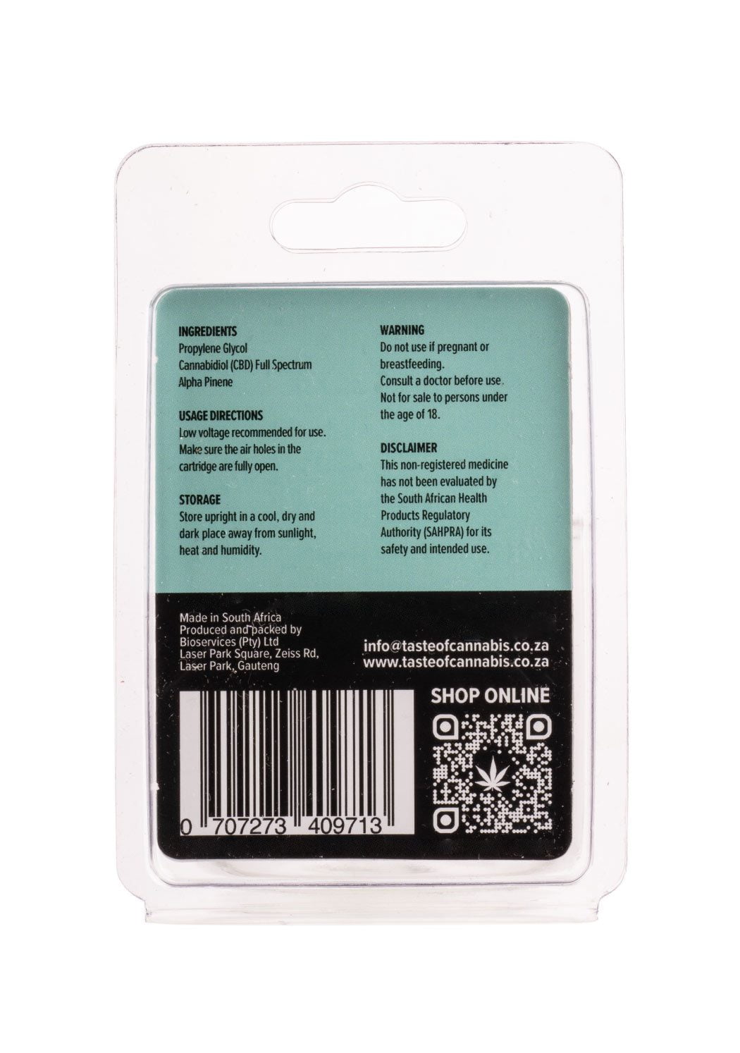 Take a deep breath and unwind with our Relax CBD Vape Cartridge. Packed with 300mg of full spectrum CBD and THC-free, this calming formula is designed to ease stress, support better sleep, and promote relaxation without the high. Perfect for evenings or anytime you need a break, this vape cartridge pairs seamlessly with the Taste of Cannabis Vape Battery Pen for a smooth and enjoyable experience.