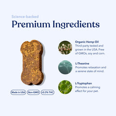 Behind every Honest Paws Calm Soft Chew is a carefully selected blend of superstar ingredients—because even the most dramatic dog deserves top-tier support. Each ingredient is chosen for its natural ability to manage normal situational stress (yes, even the kind caused by the mailman’s “intrusion”).These high-quality components, including full-spectrum hemp oil, L-Theanine, and L-Tryptophan, work together to support a calm and relaxed pet without drowsiness. Whether your pet is dealing with situational stress or just needs a little extra support staying composed, these chews provide gentle yet effective support tailored to their needs.Crafted with the highest standards of safety and quality, Honest Paws Calm Soft Chews are made with USDA Organic hemp and are free of GMOs, soy, and corn, making them a great choice for pets with sensitive diets. Developed with input from industry experts and backed by scientific research, every chew undergoes rigorous testing to ensure quality and consistency. By prioritizing trusted, natural ingredients, Honest Paws delivers a product you can confidently give to your dog—helping them feel their best while giving you the peace of mind you deserve.