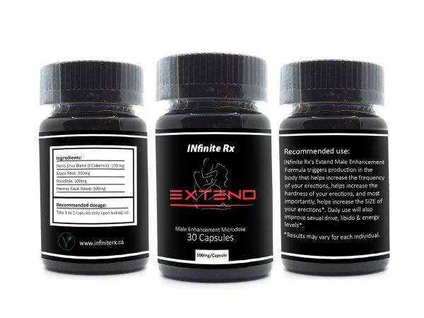 INfinite Rx’s Extend Male Enhancement Formula triggers production in the body that helps increase the frequency of your erections, helps increase the hardness of your erections, and most importantly, helps increase the SIZE of your erections*. Daily use will also improve sexual drive, libido & energy levels*. *Results may vary for each individual.